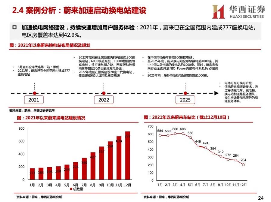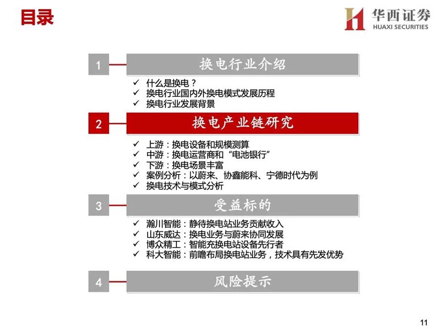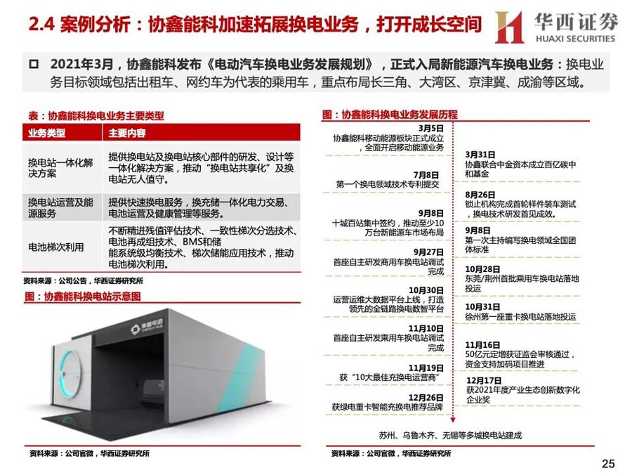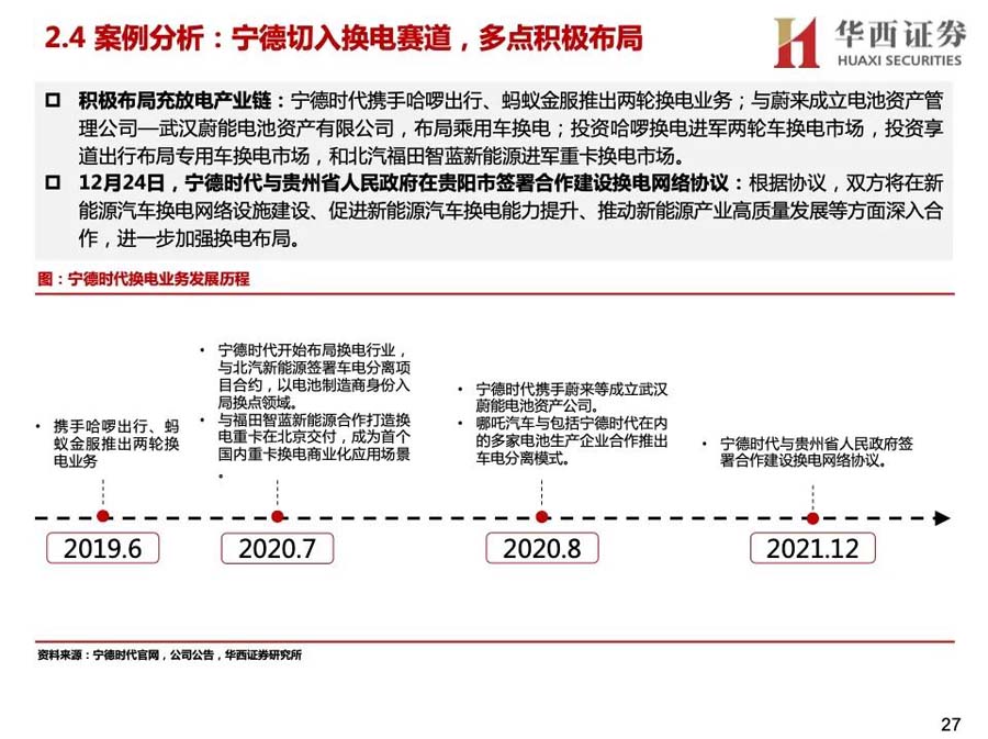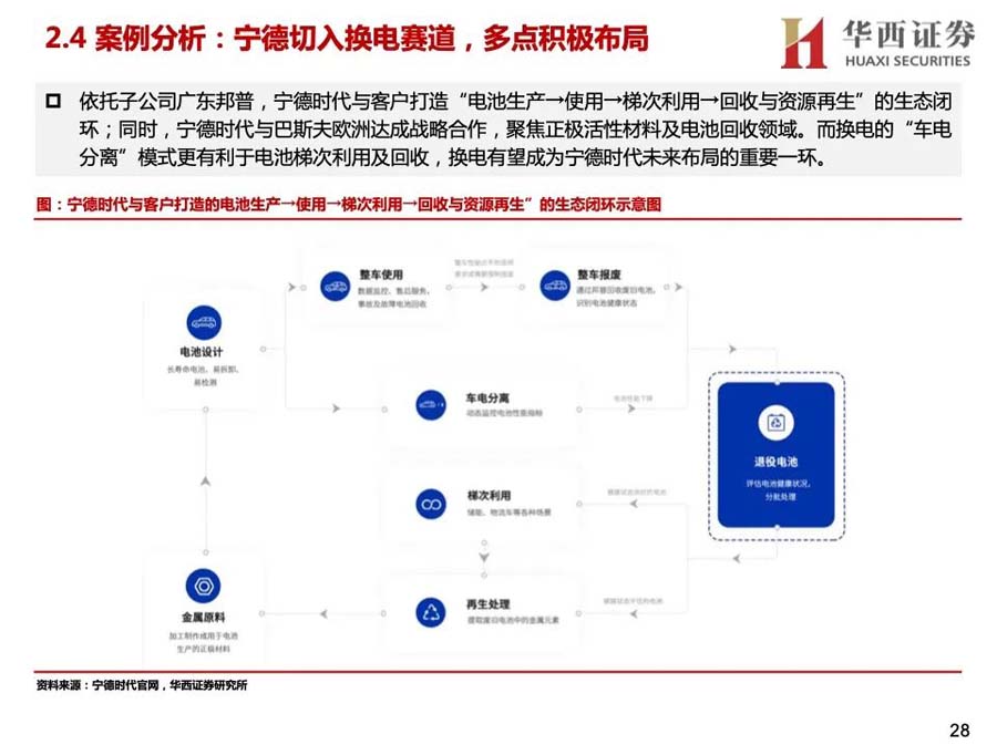 3)產(chǎn)業(yè)資本進(jìn)入:蔚來、奧動(dòng)新能源等是主要玩家,參與者較少。2020年后主機(jī)廠投入增大,換電車型增多,換電站布局加快;同時(shí),電池廠與主機(jī)廠合作,開始成立電池資產(chǎn)管理公司,換電產(chǎn)業(yè)鏈上下游進(jìn)一步深入合作,并有望打開梯次利用、電池回收等行業(yè)空間。