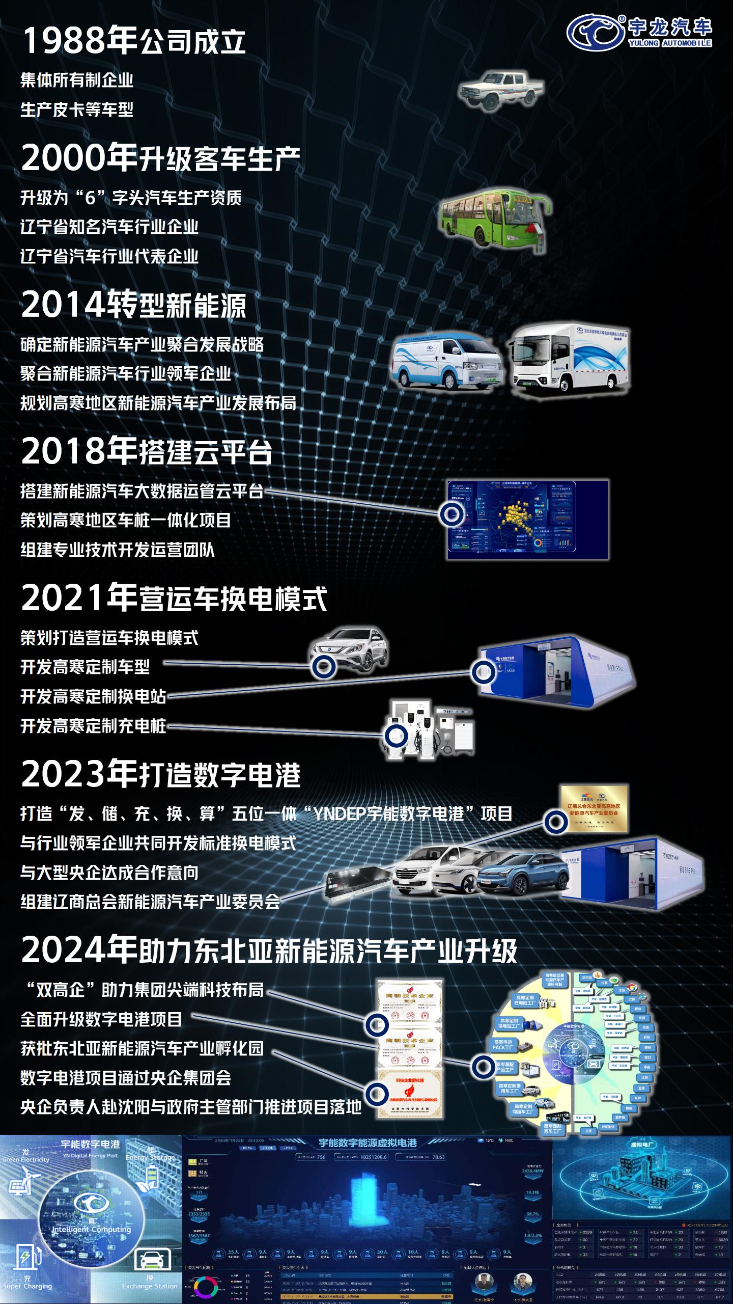 1988年,宇龍汽車(chē)成立,在獲取 6 字頭生產(chǎn)資質(zhì)后,產(chǎn)品線得以拓寬,開(kāi)啟了多元發(fā)展的新篇章,在遼寧客車(chē)生產(chǎn)領(lǐng)域嶄露頭角,帶動(dòng)了上下游產(chǎn)業(yè)鏈的協(xié)同奮進(jìn),創(chuàng)造了大量就業(yè)與經(jīng)濟(jì)效益,技術(shù)的革新也為地區(qū)工業(yè)注入活力。 2014 年,面對(duì)全球汽車(chē)產(chǎn)業(yè)的電動(dòng)化變革,宇龍汽車(chē)毅然轉(zhuǎn)型新能源領(lǐng)域,前瞻性地確立聚合發(fā)展戰(zhàn)略,整合資源、匯聚人才,成為遼寧新能源汽車(chē)產(chǎn)業(yè)的先鋒隊(duì)。2018 年,云平臺(tái)的搭建讓宇龍站在科技前沿,新能源汽車(chē)大數(shù)據(jù)運(yùn)管云平臺(tái)為新能源汽車(chē)運(yùn)營(yíng)監(jiān)管和車(chē)樁一體化管理提供了平臺(tái)。同時(shí),技術(shù)開(kāi)發(fā)運(yùn)營(yíng)團(tuán)隊(duì)的組建,宛如為企業(yè)注入創(chuàng)新引擎,不斷推動(dòng)產(chǎn)品升級(jí)、服務(wù)優(yōu)化,提升了遼寧在新能源汽車(chē)產(chǎn)業(yè)的科技競(jìng)爭(zhēng)力與影響力。 2021 年,宇龍聚焦?fàn)I運(yùn)車(chē)換電模式,高寒定制車(chē)型的開(kāi)發(fā)打破技術(shù)瓶頸,適應(yīng)東北寒冷氣候,換電站與充電樁的建設(shè)構(gòu)建起能源補(bǔ)給網(wǎng)絡(luò),不僅助力本地交通領(lǐng)域的節(jié)能減排,更為相關(guān)產(chǎn)業(yè)技術(shù)標(biāo)準(zhǔn)的制定提供了本土經(jīng)驗(yàn),引領(lǐng)遼寧新能源汽車(chē)應(yīng)用場(chǎng)景的拓展與技術(shù)的深化發(fā)展。 2023 年,“YNDEP數(shù)字電港”項(xiàng)目盛大登場(chǎng),搭建集“發(fā)、儲(chǔ)、充、換、算”五位一體的全新模式,與行業(yè)領(lǐng)軍者攜手開(kāi)發(fā)標(biāo)準(zhǔn)換電模式,同大型央企的合作意向?yàn)轫?xiàng)目注入雄厚資源與強(qiáng)大信心,遼商總會(huì)新能源汽車(chē)產(chǎn)業(yè)委員會(huì)的組建,凝聚起產(chǎn)業(yè)集群力量,宇龍汽車(chē)作為核心推動(dòng)者,為遼寧新能源汽車(chē)產(chǎn)業(yè)注入強(qiáng)心劑,帶動(dòng)區(qū)域新質(zhì)生產(chǎn)力高質(zhì)量發(fā)展。 在即將過(guò)去的 2024 年,宇龍汽車(chē)將“YNDEP宇能數(shù)字電港”項(xiàng)目、“東北亞新能源汽車(chē)全產(chǎn)業(yè)鏈?zhǔn)痉痘亍表?xiàng)目完美整合升級(jí)為東北亞數(shù)字能源戰(zhàn)略升級(jí)項(xiàng)目。憑借多年的技術(shù)積累優(yōu)勢(shì)與產(chǎn)業(yè)基礎(chǔ),又一集團(tuán)企業(yè)獲得國(guó)家級(jí)高新技術(shù)企業(yè)稱(chēng)號(hào),雙高企的尖端科技布局日臻完善。同時(shí),東北亞新能源汽車(chē)產(chǎn)業(yè)孵化園獲批,為宇龍汽車(chē)助推遼寧新能源汽車(chē)產(chǎn)業(yè)發(fā)展邁出堅(jiān)實(shí)一步,它將吸引更多優(yōu)質(zhì)資源匯聚遼寧,孵化創(chuàng)新企業(yè)與項(xiàng)目,為東北亞地區(qū)新能源汽車(chē)產(chǎn)業(yè)升級(jí)架橋鋪路,在全球綠色能源交通變革中,書(shū)寫(xiě)遼寧工業(yè)的輝煌篇章,在不遠(yuǎn)的未來(lái)必將助力遼寧在工業(yè)新時(shí)代持續(xù)騰飛。